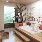 合理,产品搭配新颖,书柜和字台的更大的空增加了卧室的功柜和字台的更大的能性。
