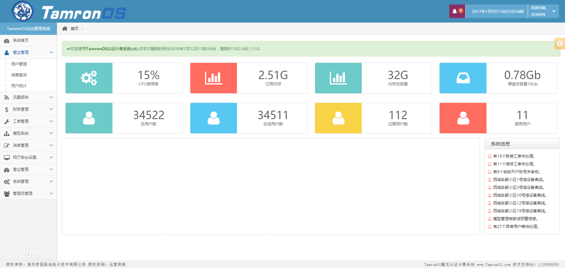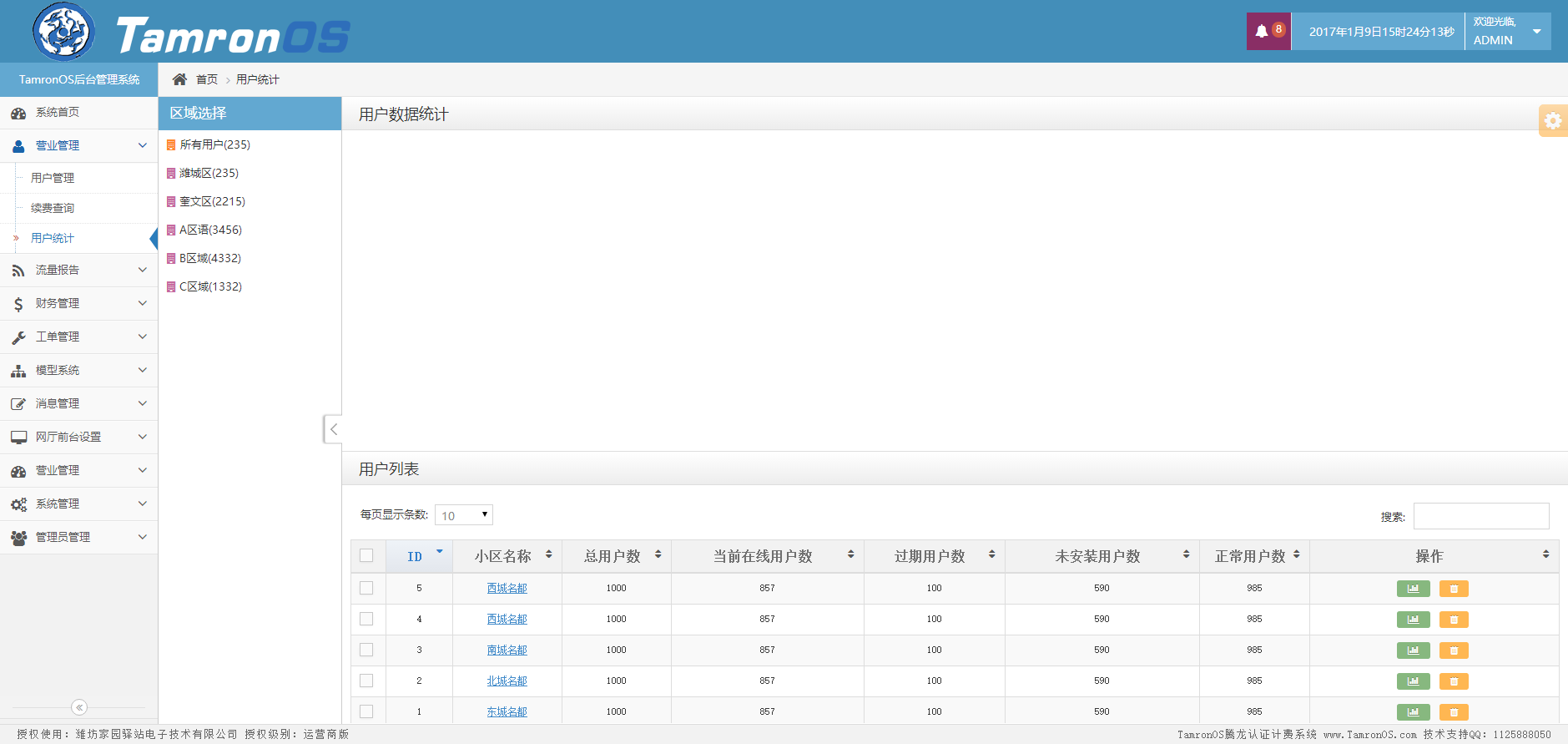 产品名称(产品)认证计费系统拥有最完善的用户管理功能,用户账号、姓名、电话、交费时间、计费时间、到期时间、IP、所在Bras、快捷操作;同一页面内数据全部展现。